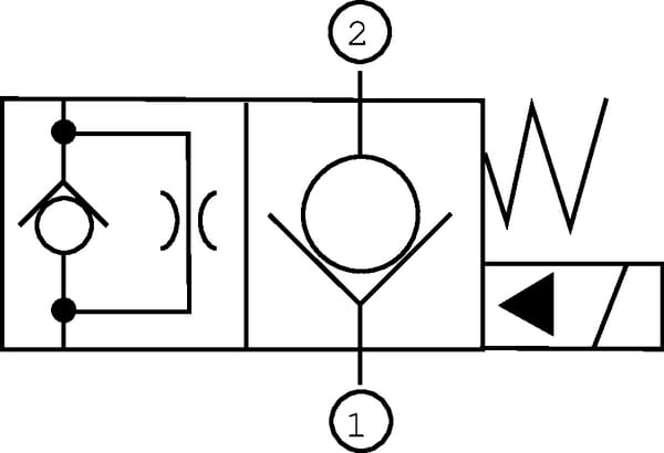 | Popis výrobku | Normálně zavřený, předem aktivovaný elektromagnetický ventil. V nenapájeném stavu jsou otvory 2 do 1 zavřené a mezi otvory 1 do 2 je volný průtok. Za provozu je volný průtok z otvoru 2 do 1 a silně omezený průtok z otvoru 1 do 2. Zobrazit více |