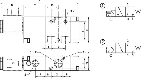 3/2cestný magnetický ventil, monostabilní s nastavením se zpětnou pružinou, se servořízením