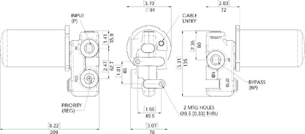 | Popis výrobku | VFD120-E je tlakově kompenzovaný regulační ventil pro mobilní a průmyslové aplikace. Dělič proudu rozděluje jeden vstupní proud (P) na prioritní proud (REG) a obtokový proud (BP), který lze vrátit přímo do zásobníku oleje nebo použít k napájení druhého systému. To je možné díky adaptivní kompenzaci tlaku ventilu. To znamená, že prioritní i obtokové proudy lze použít k řízení samostatných obvodů, a to i při různém zatížení. V mnoha případech tak odpadá potřeba dalšího čerpadla pro pohon druhého systému. Konstrukce ventilu VFD120-E je rovněž optimalizována tak, aby se snížily energetické ztráty minimalizací tlakových ztrát přes ventil, což vede k výraznému snížení provozních nákladů. Zobrazit více |