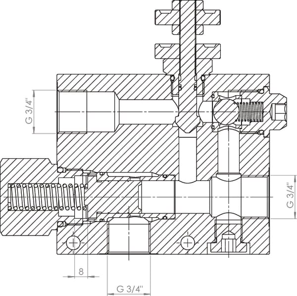 3cestný průtokový regulační ventil, ovládání bez zpětného proudu