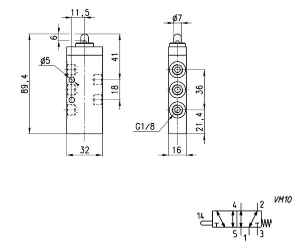 5/2c. ventil se zdvihát.