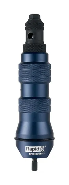 • RP150 Multi je elegantní, vysoce výkonná alternativa složitých nýtovacích nástrojů. Funguje jako adaptér a snadno se připojí k vrtačce nebo šroubováku stejně jako standardní vrták nebo bit. To umožňuje vyšší efektivitu při větších opravách a opakovaných pracích s plechem.