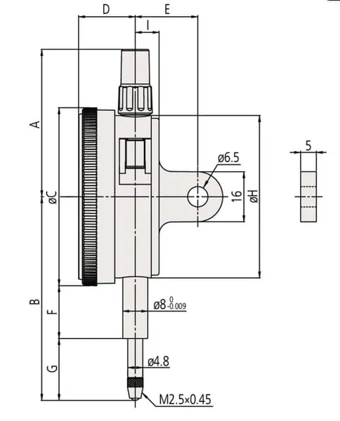 Analogové měřicí hodiny, plochá zadní strana, typ ISO