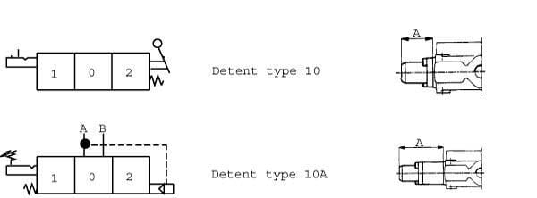 Kus | Walvoil | Aretování pro ručně ovládané regulační ventily Walvoil, typ 10 | Pevná poloha 2 – návrat pružiny do střední polohy pro polohu 1 | |