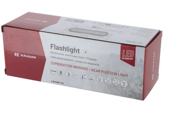 Blikající výstražné světlo / zadní poziční světlo LED, obdélníkové, 12/24 V, oranžová/červená, 129x41x14 mm, 12/42 LED, Kramp