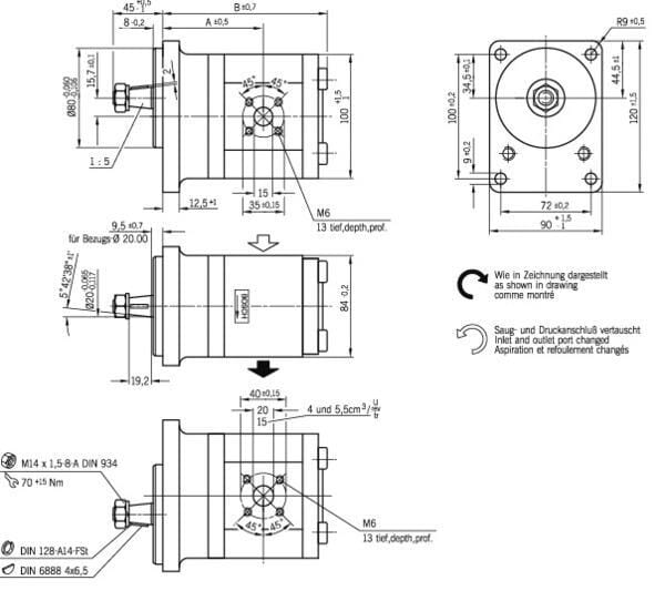 8 cm³/rev | Německý | A | 4 | Zúžení 1:5 | S | 20 mm | Metrický | M14 | 1.50 mm | 1:5 | Standardní | 250 BAR | 280 BAR | 300 BAR | 3500 r/min | 1400 r/min | Pravotočivé (CW) | 72 mm | 100 mm | Boční | Hliník | Litina | 35 mm | 40 mm | 80 mm | 2 | |