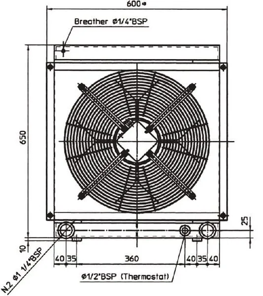 Technická informace Chladiče oleje a vody jsou používány jako výměník tepla mezi olejem a okolím. Chladiče jsou vybaveny termostatem (40°C – 48°C). Motor MUSÍ být spínán přes relé. ND: OK9205035N Motor 24 V DC