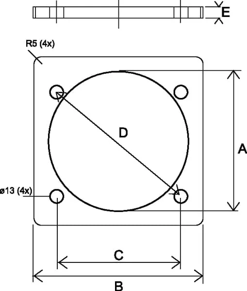 Čtyřhranná ocelová příruba pro pouzdra s nákružkem PVC