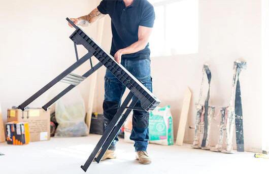 Popis výrobku Skládací pracovní stůl STANLEY FATMAX®, který se snadno sestavuje a rozkládá během několika sekund.