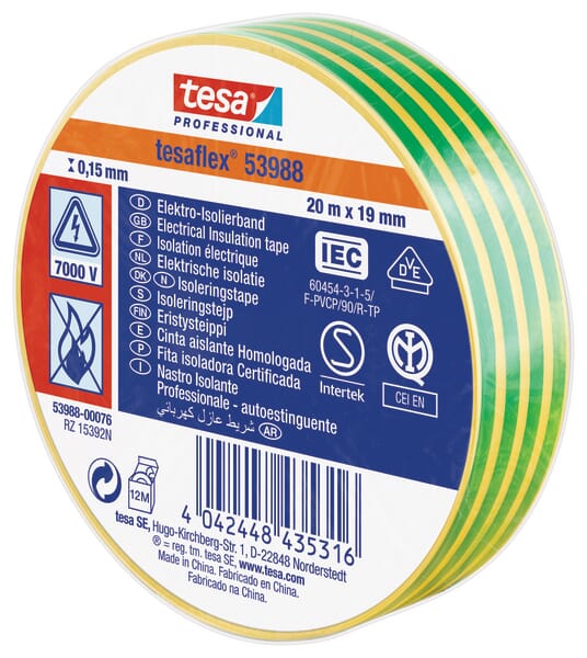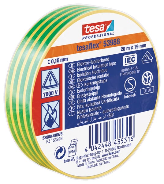 Elektroizolační páska, žluto-zelená, 20 m x 19 mm, TesaFLEX®