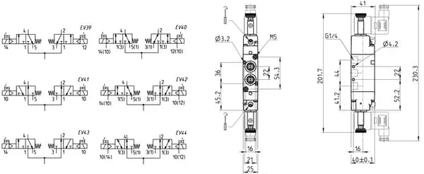 Typ ventilu 2×3/2 NC