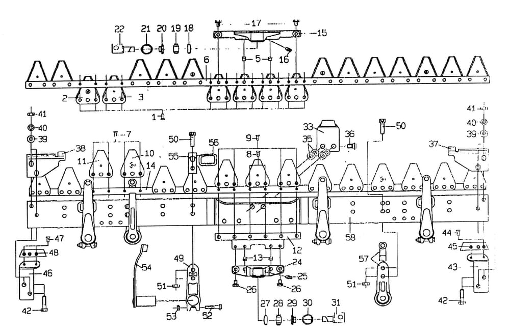 E.S.M. Nosník žací lišty s dvojitým nožem – střední pohon jednotlivé díly