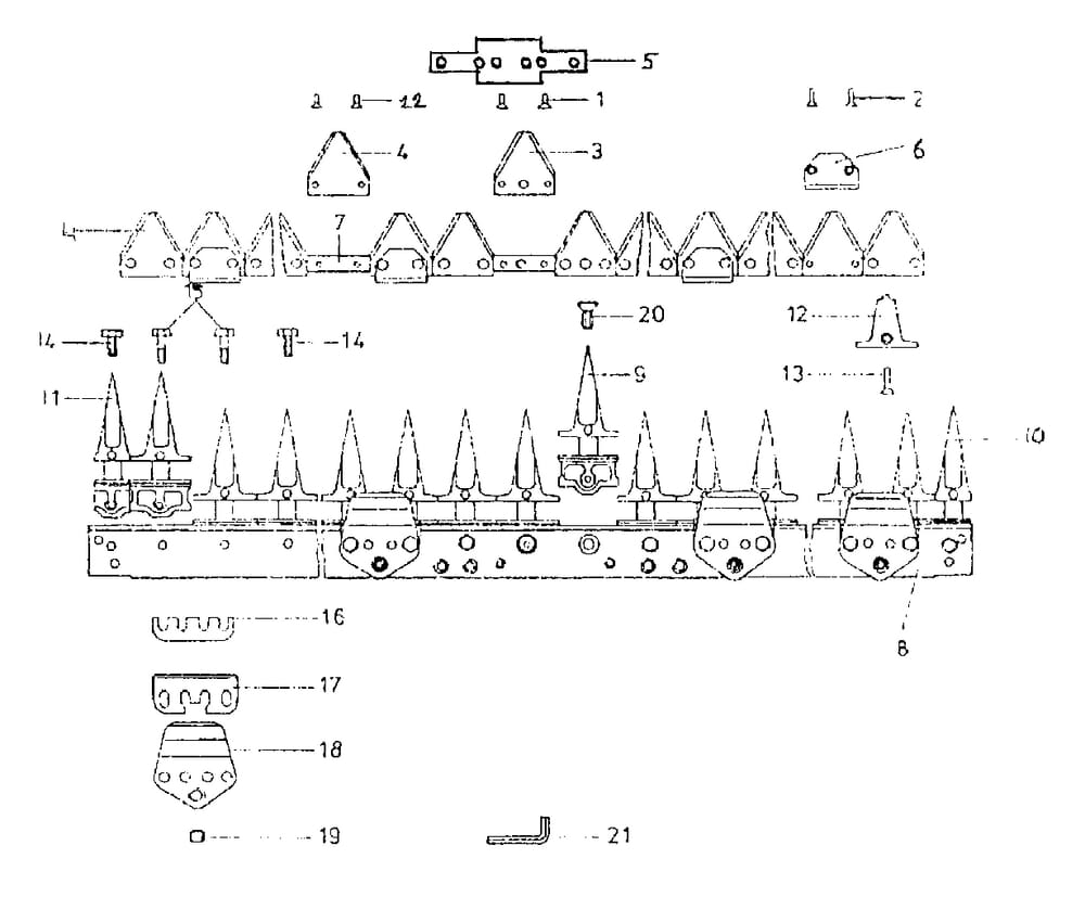 ESM – Prstový nosník + jednotlivé díly nože pro vysoký řez