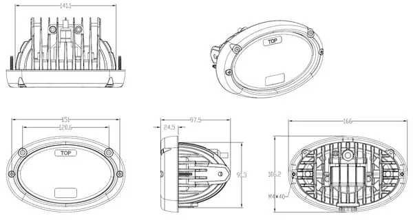 Headlight LED, 20/24W, oval, 10/30V, 166×106.2×97.5mm, high/low beam, 3-pin open cable flush mount