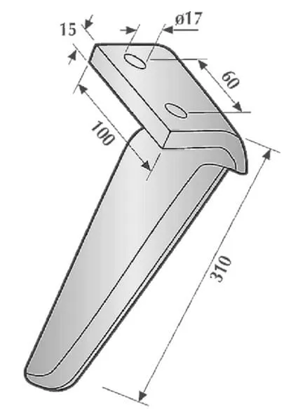 Hrot rotačních bran pravý, 300 mm, vhodný pro Maschio, Kramp