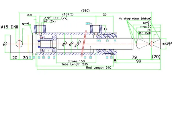 Vzdálenost konce válce ke konci tyče 99 mm