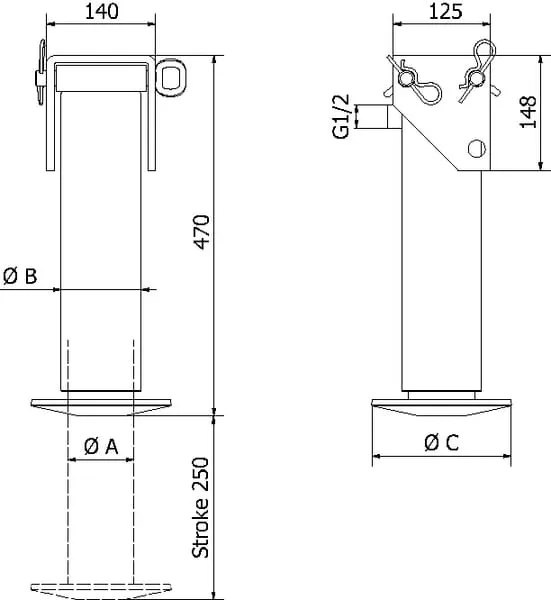 Hydraulická opěrná noha kpl. 65-250