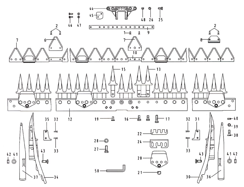 – jednotlivé díly – nosník prstů + Kosa pro střední střih 72×12 E.S.M.