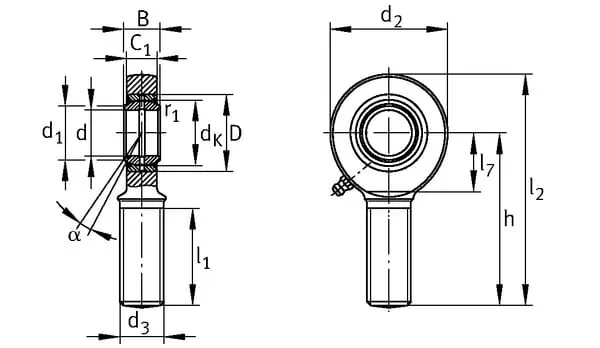 | Technická informace | Kloubové hlavy, které podléhají údržbě – dle DIN 648-rozměr. řada E,Form A, ISO 6126, spojení: ocel/ocel,dřík s vnějším závitem, pravotočivým |