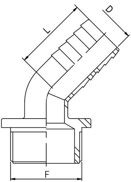 Koncovka hadice 45° 30 mm x 1 1/2" M