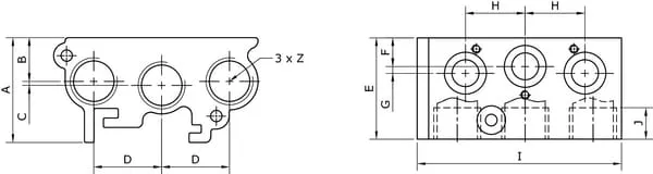 Vzdálenost mezi spodním a středovým tlakovým portem 37,3 mm
