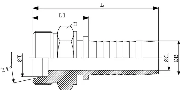 Koncovka pro výrobu hadice z ušlechtilé oceli CEL/PR vnější závit metrický s tvarem vývrtu W24° pro střižný kroužek, lehká řada