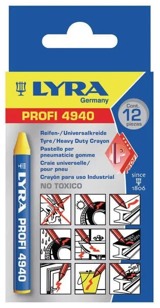 Popis výrobku Křída na pneumatiky se velmi dobře hodí ke značení suchých i mokrých pneumatik, lze s ní snadno značit téměř všechny materiály.