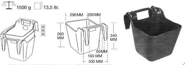 | Popis výrobku | Těžké plastové koryto z vysoce odolného a trvale pružného materiálu, lze snadno zavěsit do boxů pro koně, přívěsu nebo na ohradu. Díky hladkému povrchu se snadno čistí. Design a absence ostrých rohů usnadňují zvířatům krmení. Výrobní materiál splňuje předpisy pro bezpečnost potravin, plast je odolný vůči UV záření a je vhodný i pro dlouhodobé použití venku. |