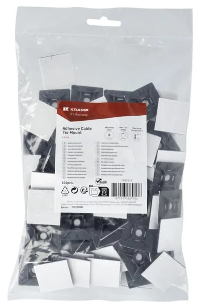 Lepicí úchytka kabelového stahovacího pásku, 4,8 mm, 100 ks