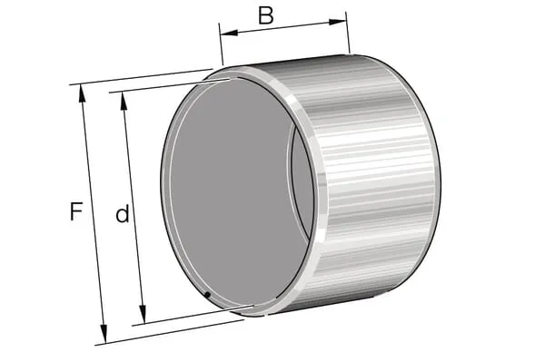 • Zkosené hrany na zadní straně usnadňují nasazení kroužků nebo ložiskového kroužku na jehlový věnec