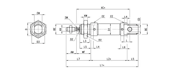 | EE/CDTyp závitu montážních otvorů po stranách pouzdra | Metrický |