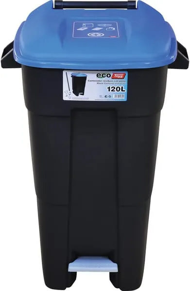 Nádoba na odpad s pedálem, černo-modrá, 120 L, 600x568x886mm