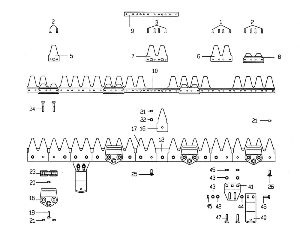 Náhradní díly pro nosník žací lišty + nůž Univerzál (nové provedení) E.S.M.