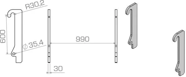 Vzdálenost upevňovacích čepů 600 mm