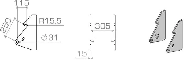 Vzdálenost upevňovacích čepů 250 mm