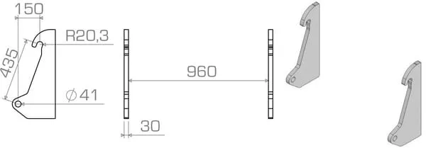 Vzdálenost upevňovacích čepů 435 mm