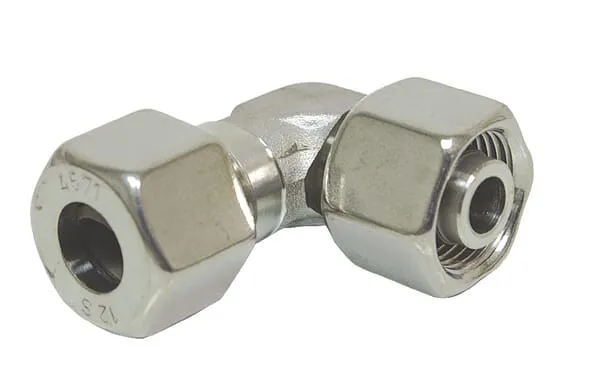Nastavitelné úhlové spojky 90° z nerezové oceli, převlečná matice metrická x řezný kroužek metrický