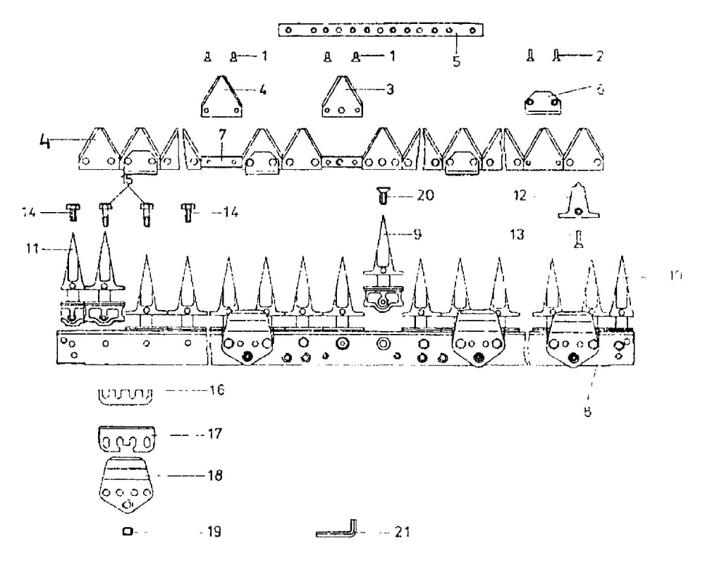 Nosník žací lišty+ nůž pro vysoký střih jednotlivé díly E.S.M.