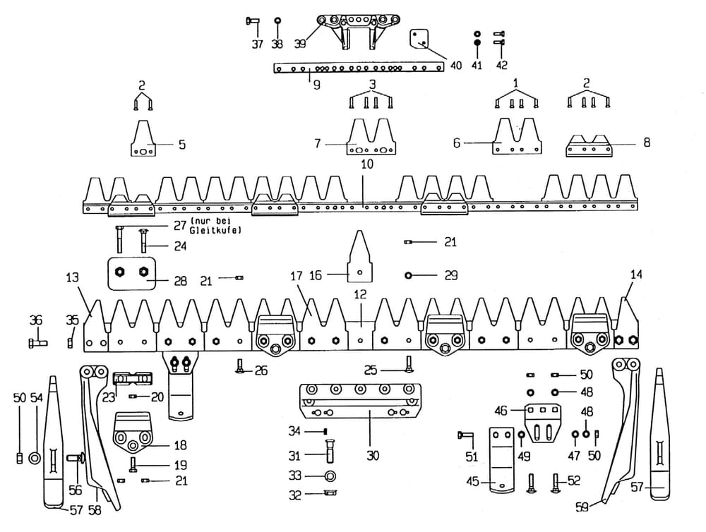 Nosník žací lišty+ nůž Univerzál jednotlivé díly E.S.M.
