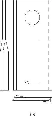 Nůž rotační sekačky rotace vpravo 115 x 48 x 4 mm; otvor Ø 19 mm; vhodný pro Claas; 25 ks/bal.