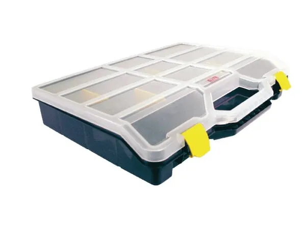 Popis výrobku Robustní organizér na příslušenství vyrobený z nárazuvzdorného polypropylenu. Ideální jako organizér pro malé nástroje a příslušenství. Díky vyjímatelným přepážkám lze organizér na příslušenství uspořádat podle vašich vlastních potřeb.