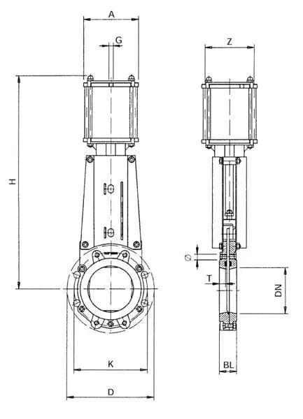 Deskové šoupátko pneum. DN200