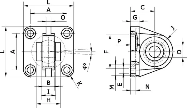 Zahrnuta Swivel flange, 4 screws