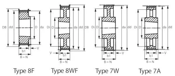 Ozubené řemenice Taperlock, ZR – typ L. rozteč 9,525 mm pro šířku řemene 1/2″