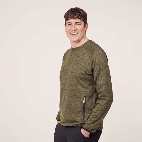 Pánská fleecová mikina s kulatým výstřihem, olivová, vel. XL