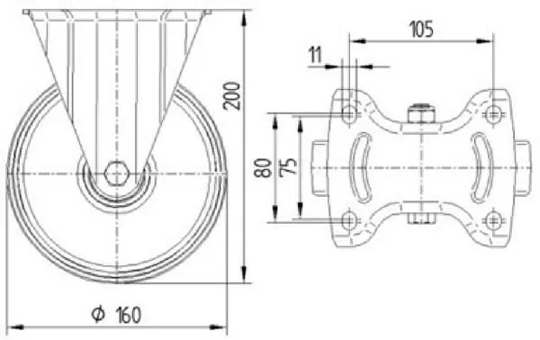 Pevné kolečko s polyamidovým kolem 160 mm