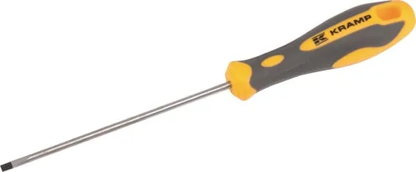 Popis výrobku Ploché šroubováky s válcovou čepelí a ergonomickou rukojetí vyrobenou z dvousložkového plastu pro optimální přenos síly. Rukojeti jsou barevně odlišné pro rychlou identifikaci správného šroubováku.