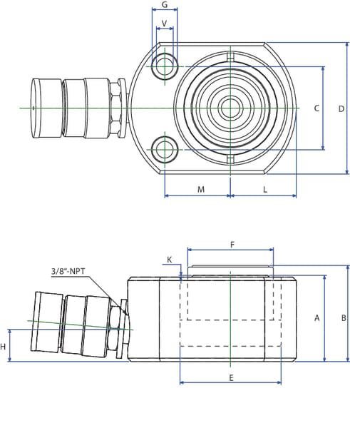 | Produkt | Košík | Cena | Jednotka | Značka | FPrůměr tyče | Zdvih | AMin. délka | BMax. délka | Typ upevnění – připojení válce | Typ upevnění – připojení tyče | Max. kapacita | Kapacita oleje | KVzdálenost konce válce ke konci tyče | HVzdálenost středu připojení oleje ke konci válce – strana válce | EVnitřní průměr válce | MVzdálenost středu montážního otvoru ke středu tyče | DŠířka | Hmotnost |