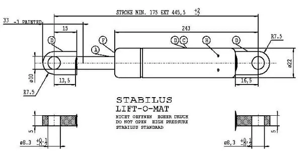Popis výrobku Plynové vzpěry, typ B