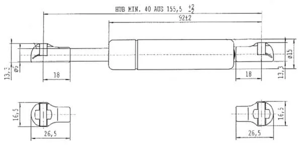 Plynová vzpěra L155,5 mm 300 N, Stabilus
